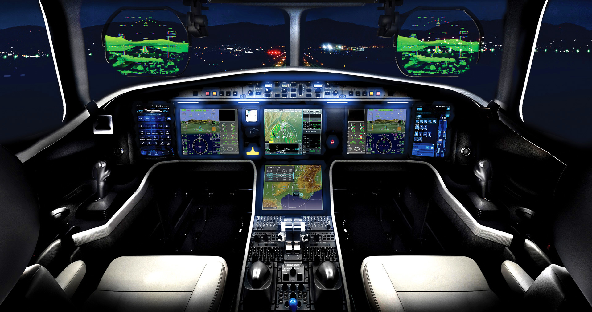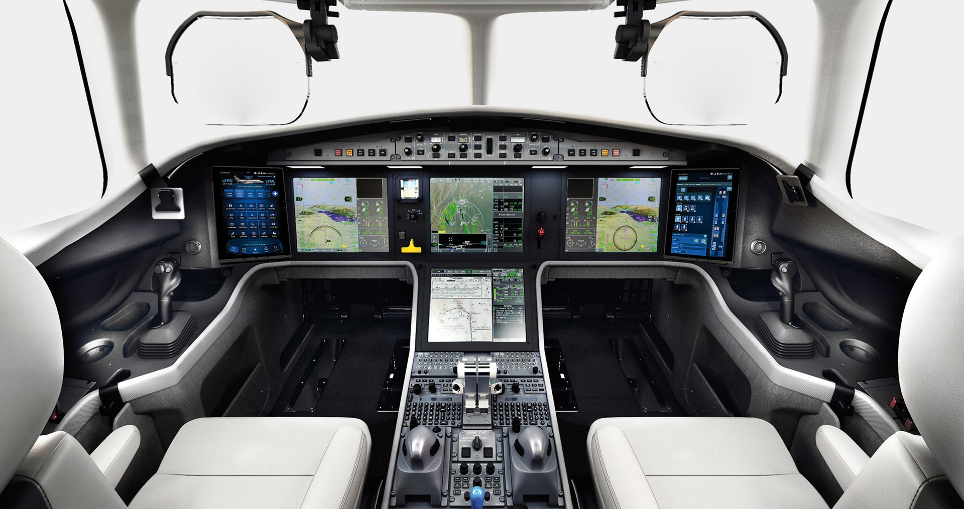 Dassault’s Digital Flight Control System (DFCS) commands all flight control surfaces for peak performance and efficiency. Advanced flight envelope protection increases safety margins. Falcons with DFCS improve Cockpit Resource Management (CRM) and reduce pilot workload to provide passengers with a smooth, comfortable flight experience.