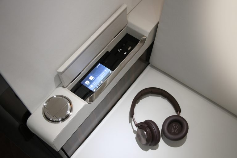 The cabin is fully Bluetooth capable, allowing passengers to stream music through the aircraft’s speakers or through a wireless headset. Once connected through Bluetooth, the ICS app identifies a passenger’s seated location and proposes environmental settings for temperature, lighting and window shade adjustment.