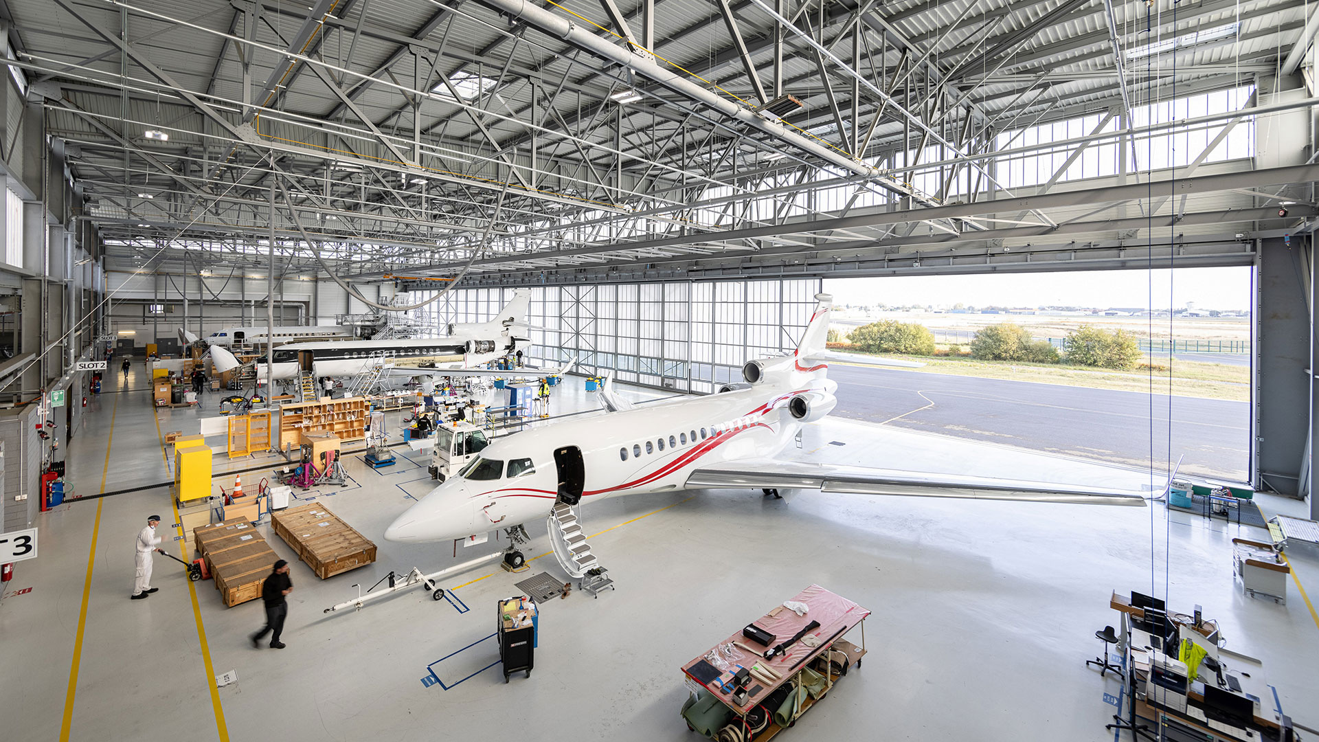 Staffed by a crew of 62, the Mérignac center is equipped to handle structural repair, cabin refurbishment and modifications, avionics upgrades, carpentry and paintwork, in addition to heavy maintenance. It is now being expanded to service additional models, including the Falcon 900EX EASy and 2000EX EASy and Dassault’s new extra-widebody Falcon 6X, due to enter operation in 2022.