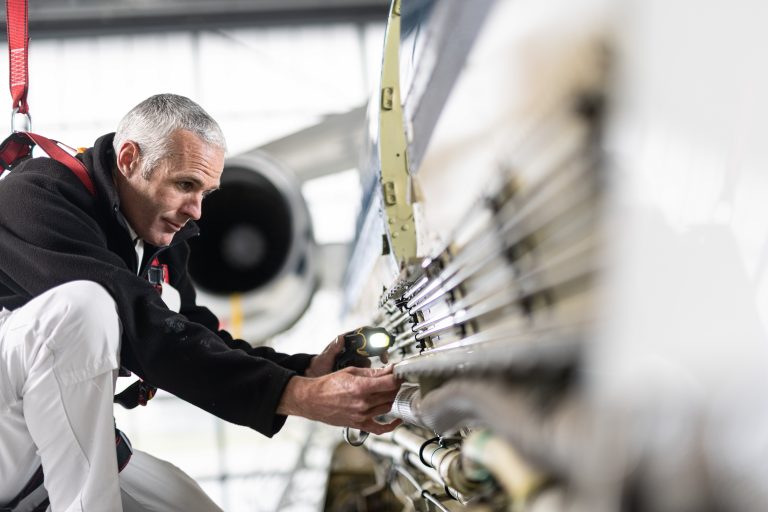 The C-check is the most extensive inspection operation, and for a Falcon 7X takes a minimum of six weeks to complete. It is performed after every eight years or 4,000 hours of service and is often accompanied by additional upgrades such as complete paint, Satcom Ka-band installation, avionics retrofits or refurbishment work.